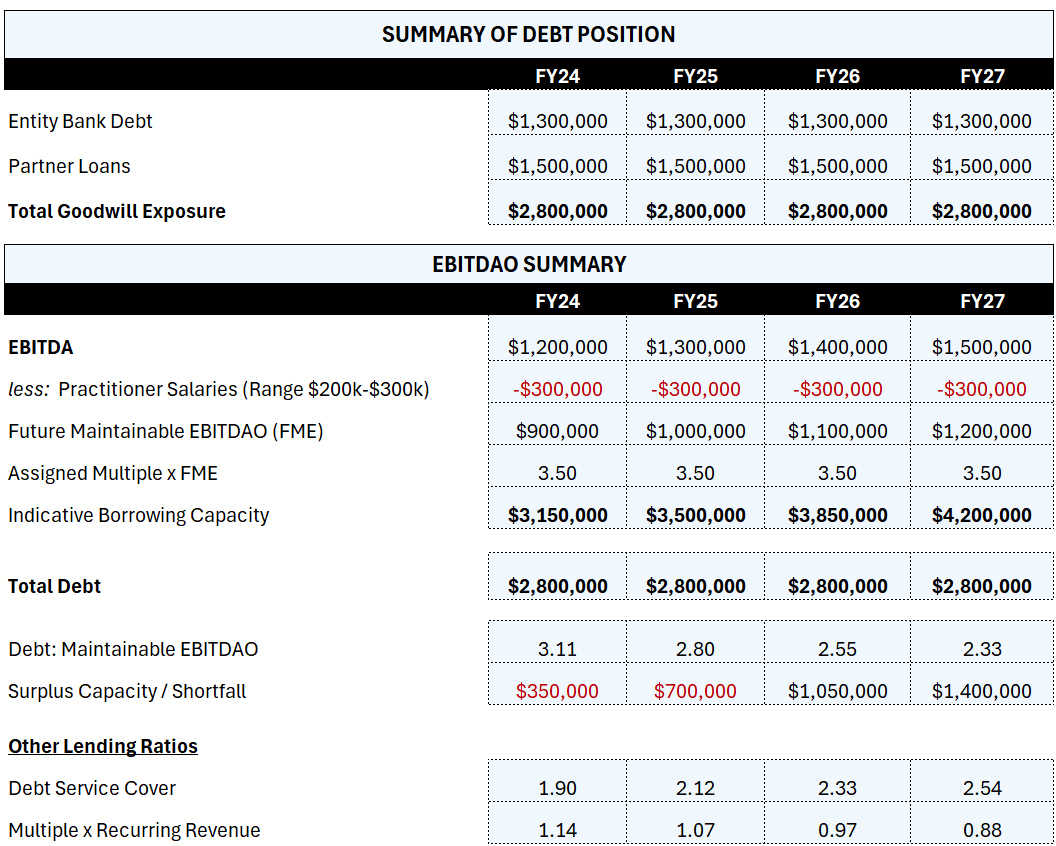 A capacity ratio used by Credit Providers to determine borrowing risk. the ratio represents the total amount of debt owed compared to the Adjusted Earnings of the business; usually known as EBITDA. e.g. Total Debt / EBITDA.